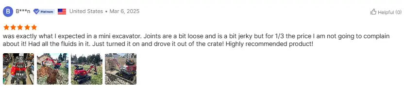 ہمارے منی کھدائی کرنے والے کے پاس ایڈجسٹ سیٹیں ، اختیاری گیئر شفٹوں ، ریڈیو ، ریورس کیمرا اور دیگر انتخابی افعال ہیں ، جس سے آپ کو اپنی مرضی کے مطابق کھدائی کرنے والا حاصل کرنے کی اجازت ملتی ہے جس سے آپ پسند کرتے ہیں۔